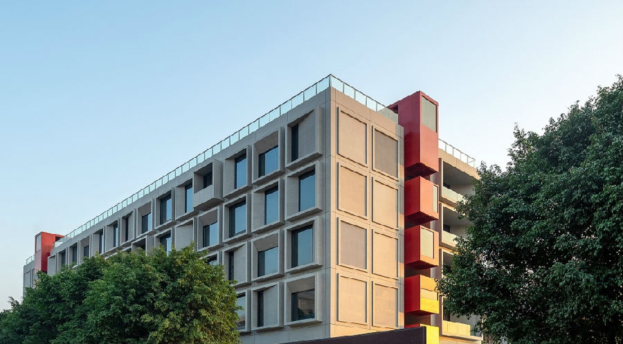 Éè¼ÆÊ¹ÓÃÒ»¸ö¼òÆÓµÄLÐÍÐÎÌåΧ³ÉÄÚÔº£¬ÃæÏò¶¼»áÒ»²àÐγÉÍêÕû½çÃæ¡£ÎªÍ»ÆÆÖÈÐò£¬LÐÍÌå¿éǶÈëÖÐÍ¥½«ÐÞ½¨´ÓÖÐÐÄÇпª£¬ÔÚÃæÏò¶¼»á½çÃæÓëÖ÷Èë¿ÚÍ¥Ôº·¿ªÎó²î£¬ÈÃÍⲿ¹ÛÕß¿ÉÒÔ¿´µ½ÊÒÄÚ£¬ÊµÏÖÐÅÏ¢ÉøÍ¸¡£Í¬Ê±£¬Èý¸öÎó²îÖÐÖÃÈëºìɫ¥ÌÝ£¬¼«¾ßÊÓ¾õ¹¥»÷Á¦£¬Â¥ÌÝ×÷Ϊ¹«¹²½»Í¨ÏµÍ³£¬½«ÖÐÍ¥Ó빫¹²¿Õ¼ä´®ÁªÆðÀ´£¬³ÉÎªÍ»ÆÆÕû¸öPCÄ£¿é»¯Éè¼ÆºÍÖÈÐòµÄÒ»¸ö¡°²»Çå¾²¡±ÒòËØ¡£